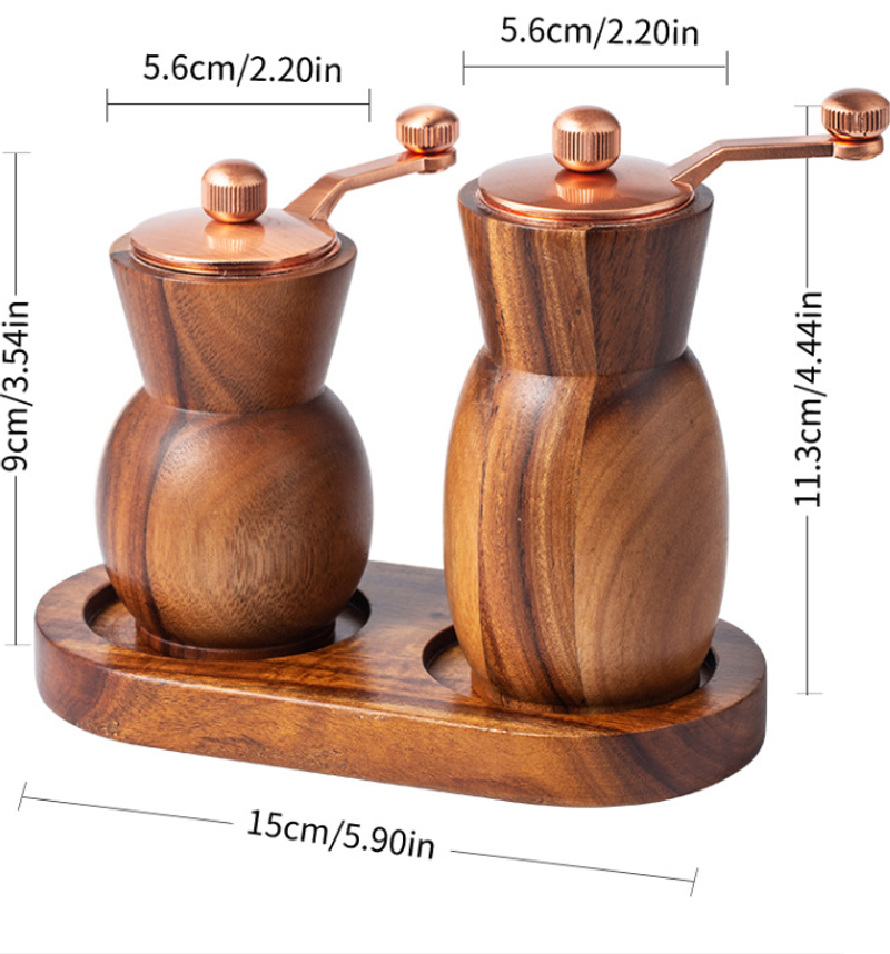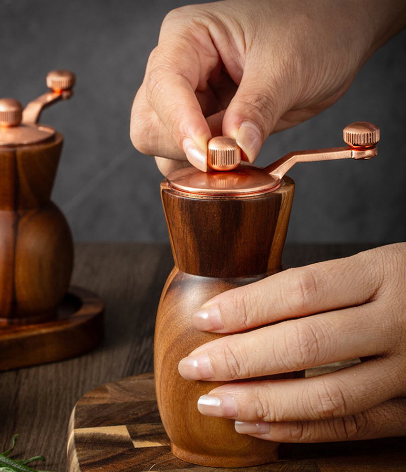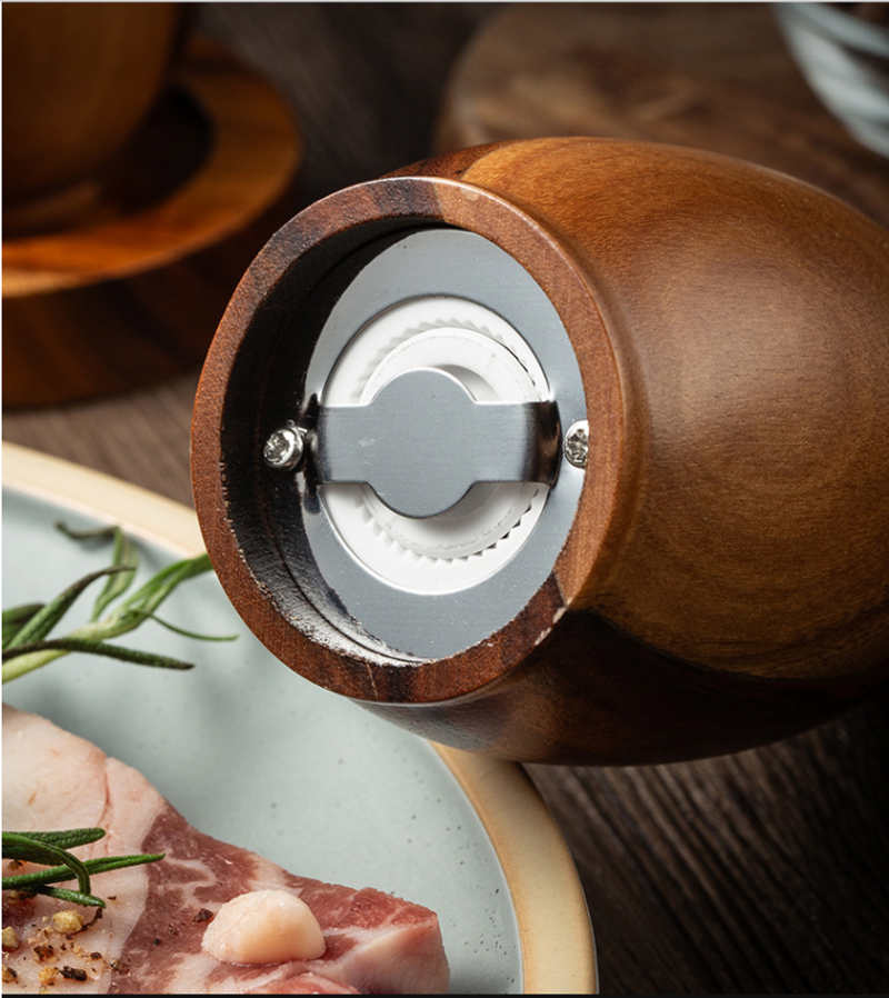 Hand-operated acacia pepper grinder